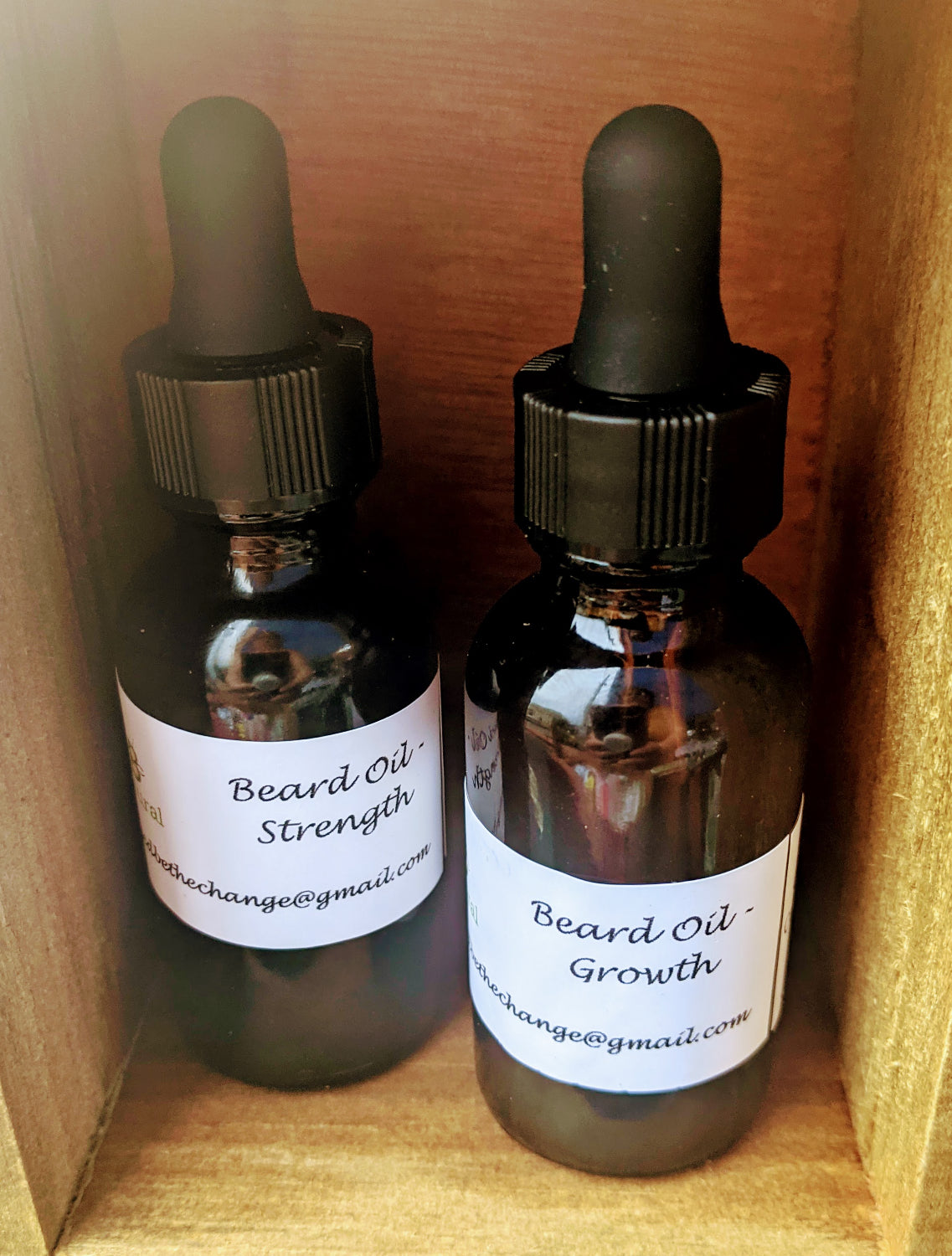 Oils to help tame and grow your beard as well as help the skin beneath. Both will condition but the Strength variant has more moisturizing benefits for the hair and skin.